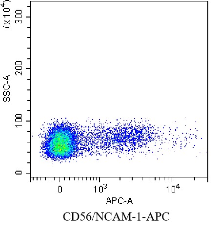 • Staining of normal human peripheral blood mononuclear cells (PBMCs) using APC Anti-Human CD56/NCAM-1 Antibody (Clone: B159) (Product No.: H4263). Analyzed data are derived from lymphocytes.
