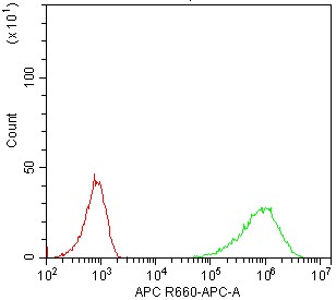 • Staining of HepG2 cell line cells using APC Anti-Human CD71 Antibody (Clone: M-A712) (Product No.: H3933) (Green, red is blank cells). Analyzed data are derived from total cells.