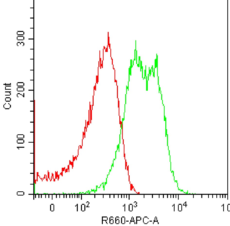 • Staining of MCF-7 cells using APC Human CXCR7/RDC-1 Antibody [11G8] (Selleck Cat.: H2403) (green, with red blank control). Analyzed data are derived from live total cells.