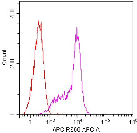 • Staining of fixed/permeabilized MOLT-4 cell line cells using APC Human Galectin-9 Antibody (Clone: 9M1-3) (Product No.: H1698) (Magenta, Red: Blank Control). Analyzed data are derived from total live cells.