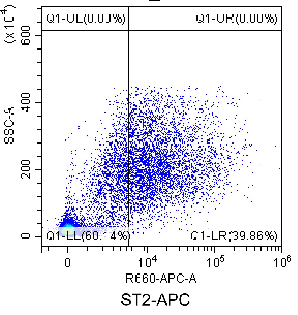 • Staining of mouse bone marrow cells stimulated with IL-13 and M-CSF for one week using APC IL-33R/ST2 Antibody (Clone: RMST2-33) (Selleck Cat.: G1788). Analyzed data are derived from live total cells.