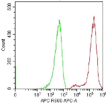 • Intracellular staining of fixed/permeabilized Jurkat cells using APC LAMP2 Antibody (Clone: H4B4) (Selleck CatNo.: G2658) (Green, Red: Blank Control). Analyzed data are derived from total live cells.