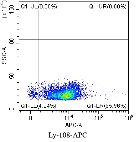 • Staining of C57B/6 mouse spleen with APC anti-mouse Ly-108 Antibody (Clone: G4C3) (Product Code: G3333). Analysis data derived from total live cells.