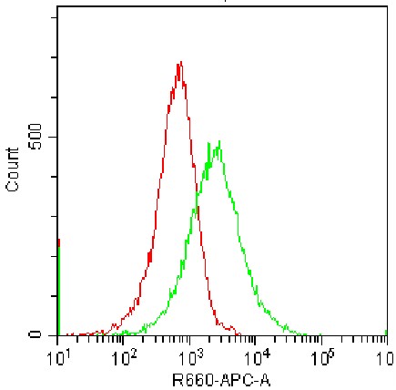 • Staining of RAW 264.7 mouse monocyte macrophage leukemia cells with APC anti-mouse CCR1 Antibody (Clone: 643854) (Selleck Cat.No: G1608) (green, red is unstained control). Analysis data derived from total live cells.