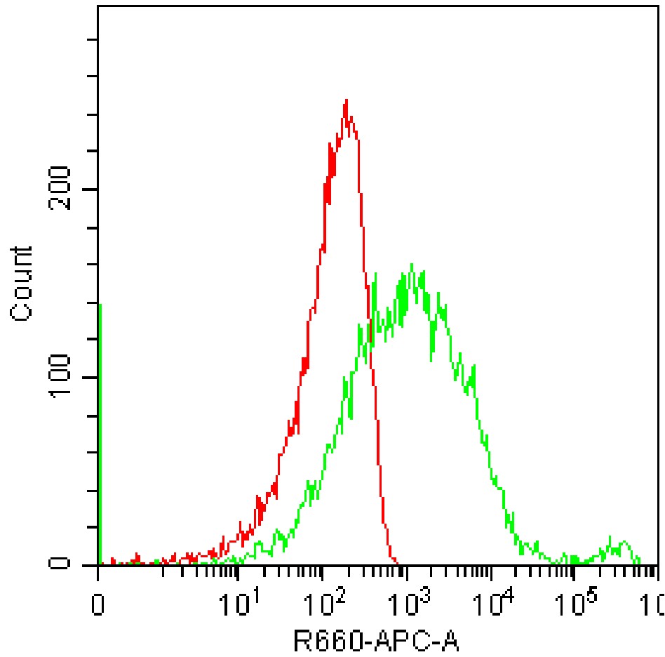 • Staining of peritoneal cells from C57BL/6 mice using APC mouse F4/80 Antibody [CI:A3-1] (Selleck Cat.: G5223) (green, with red blank control). Analyzed data are derived from live total cells.