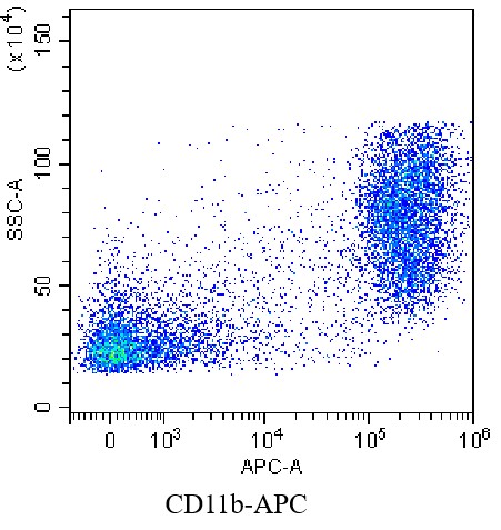 • Staining of C57B/6 mouse bone marrow cells with APC anti-mouse/human CD11b Antibody (Clone: M1/70) (Product Code: G4668). Analysis data derived from total live cells.