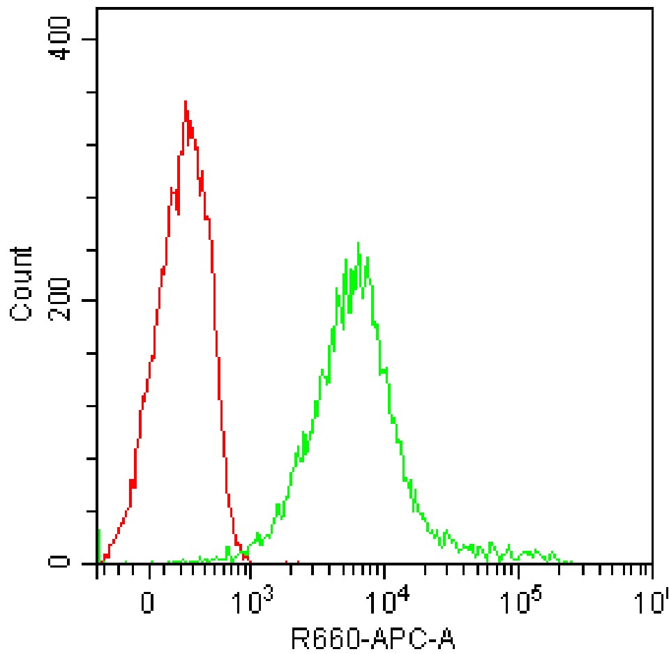 • Staining of K-562 cell line cells using APC mouse/human/rat Bcl-xL Antibody [54H6] (Selleck Cat.: G5178) (green, with red blank control). Analyzed data are derived from total cells.