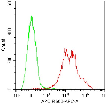 • Staining of splenic lymphocytes from C57BL/6 mice using APC Anti-Mouse LFA-1α/CD11a Antibody (Clone: M17/4) (Product No.: G4308) (red, green is blank control). Analyzed data are derived from live lymphocytes.