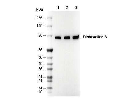 Dishevelled 3 Antibody [J9L3] 可检测内源性 Dishevelled 3 总蛋白水平。