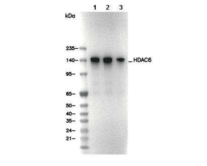 HDAC6 Antibody [K20J20] 可识别总 HDAC6 蛋白的内源水平。