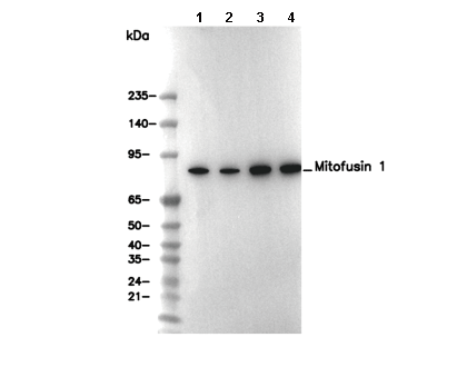 Mitofusin 1 Antibody [D5A17] 可检测内源性 Mitofusin-1 总蛋白水平。