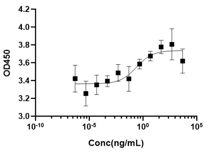 • Recombinant Human IL-6 stimulates cell proliferation of the TF-1 human erythroleukemic cell line. The EC50 for this effect is 0.25 ng/ml.