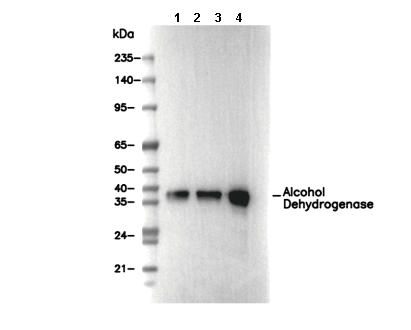 Alcohol Dehydrogenase Antibody [C8G21] 可检测内源性 Alcohol Dehydrogenase 总蛋白水平。