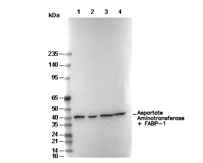 Aspartate Aminotransferase + FABP-1 Antibody [N24P14] 可检测内源性 Aspartate Aminotransferase + FABP-1 总蛋白水平。