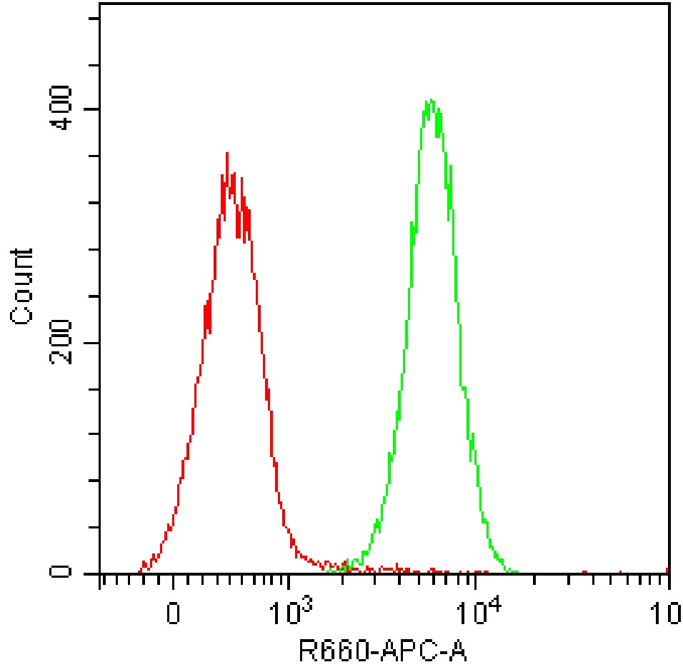 • Fixation of HepG2 cells with 80% methanol for 5 minutes, followed by permeabilization with 0.1% PBS-Tween for 20 minutes. Cells were blocked for non-specific protein interactions in 1×PBS/10% normal goat serum/0.3 M glycine, then stained with AF647 Human/mouse/rat Ubiquitin Antibody [B5B86] (Selleck Cat.: G5082) (green, with red blank control). Analyzed data are derived from all cells with intact scatter.