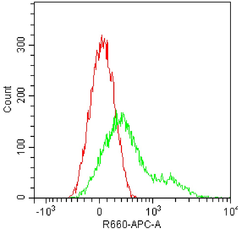 • Staining of bone marrow cells from C57BL/6 mice using AF647 Mouse CD49e Antibody [5H10-27(MFR5)] (Selleck Cat.: G1587) (green, with red blank control). Analyzed data are derived from live total cells.