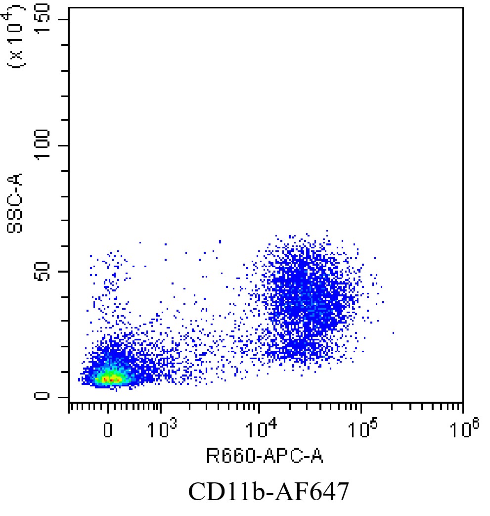 • Staining of bone marrow cells from C57BL/6 mice using AF647 mouse/human CD11b Antibody [M1/70] (Selleck Cat.: G4677). Analyzed data are derived from live total cells.