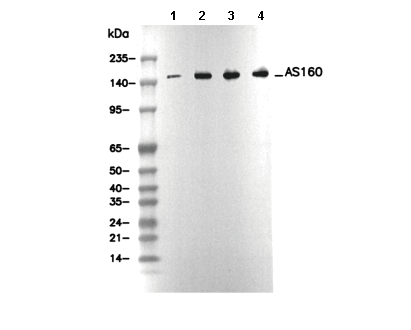 AS160 Antibody [L14F10] 可检测内源性AS160 (L14F10) 总蛋白水平。