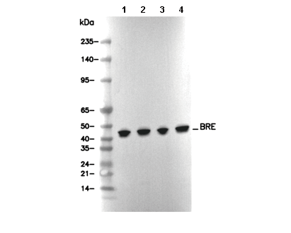 BRE Antibody [C2G22] 可检测内源性 BRE 总蛋白水平。