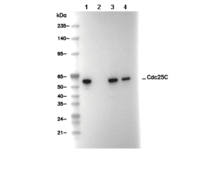 • Lane 1: Hela, Lane 2: Hela (KO CDC25C), Lane 3: K562, Lane 4: HEK293