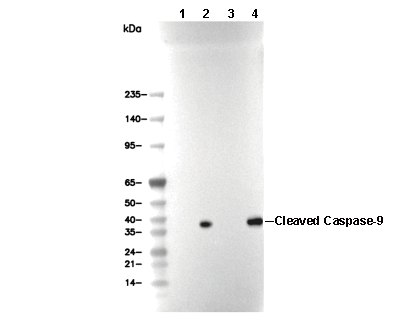 Cleaved Caspase-9 (Asp330) Antibody [M4F20] 仅识别 Asp330 处切割的内源性 Caspase-9 总蛋白水平。