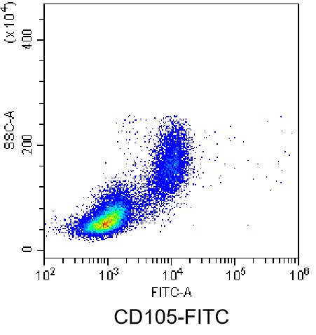 • Staining of healthy human peripheral blood mononuclear cells (PBMCs) using FITC Anti-CD105/Endoglin Antibody (Clone: SN6) (Cat. No. G0256). Analyzed data are derived from total live cells.