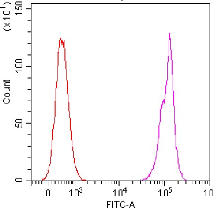 • Staining of splenic lymphocytes from C57BL/6 mice using FITC Anti-CD45 Antibody (Clone: 30-F11) (Cat. No. G0016) (magenta) and unstained control (red). Analyzed data are derived from total live cells.
