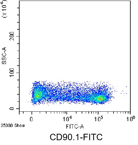 • Staining of splenic lymphocytes from SD rats using FITC Anti-CD90.1/Thy-1.1 Antibody (Clone: HIS51) (Product No.: G0736). Analyzed data are derived from lymphocytes.