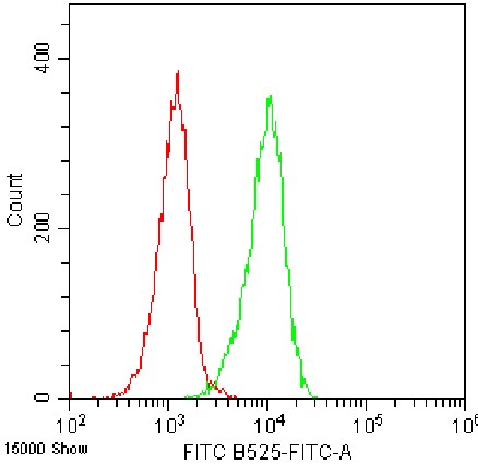 • Staining of MOLT-4 cell line cells using FITC Anti-Human CD1a Antibody (Clone: HI149) (Product No.: H1576) (green, red is blank control). Analyzed data are derived from live cells.