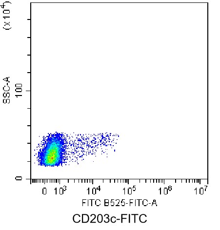 • Staining of normal human peripheral blood mononuclear cells (PBMCs) using FITC Human CD203c/E-NPP3 Antibody (Clone: NP4D6) (Selleck Cat#: H2086). Analyzed data are derived from lymphocytes.
