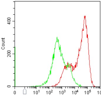 • Staining of normal human peripheral blood mononuclear cells (PBMCs) stimulated with 1ug/mL phytohemagglutinin (S6990) for 3 days using FITC Anti-Human CD25 Antibody (Clone: M-A251) (Product No.: H4246) (Red, green is blank control). Analyzed data are derived from lymphocytes.