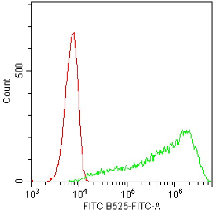 • Staining of normal human peripheral blood mononuclear cells (PBMCs) stimulated with 5μg/mL PHA overnight using FITC Human CD69 Antibody (Clone: FN50) (Product No.: H0271) (Green, Red: Blank Control). Analyzed data are derived from lymphocytes.