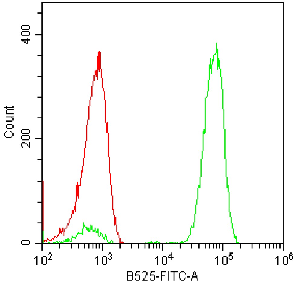 • Permeabilization of Jurkat cell line using the Foxp3/Transcription Factor Staining Buffer Set (Permeabilization Reagent), followed by intranuclear staining using Propidium Iodide (PI) and FITC Human/mouse/rat PCNA Antibody [D3H8P] (Selleck Cat.: G5011) (green, with red blank control). Analyzed data are derived from cells with intact scatter.