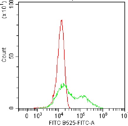 • Staining of fixed/permeabilized HEK-293F cells transfected with human IL-6 plasmid using FITC IL-6 Antibody (Clone: MQ2-13A5) (Selleck CatNo.: G1921) (Green, Red: Blank Control). Analyzed data are derived from total cells.
