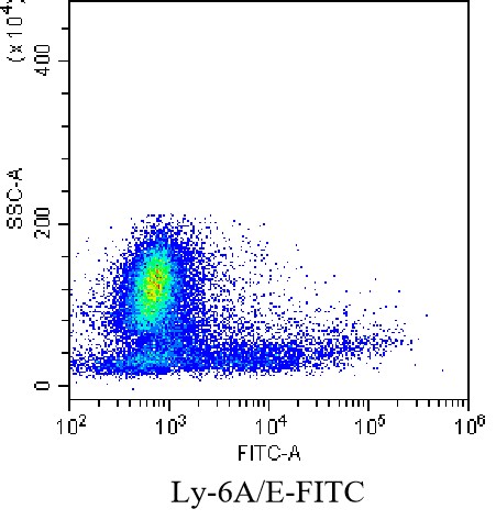 • Staining of bone marrow cells from C57BL/6 mice using FITC Anti-Ly-6A/E/Sca-1 Antibody (Clone: D7) (Product No.: G0361). Analyzed data are derived from total live cells.