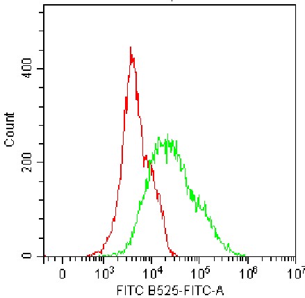 • Staining of fixed/permeabilized HEK-293F cells transfected with mouse IFN-γ plasmid using FITC Mouse IFNγ Antibody (Clone: R4-6A2) (Product No.: G4171) (Green, Red: Blank Control). Analyzed data are derived from total cells.