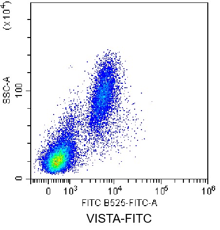• Staining of normal human peripheral blood mononuclear cells (PBMCs) using FITC VISTA Antibody (Clone: G23H7) (Selleck Cat#: G3916). Analyzed data are derived from live total cells.