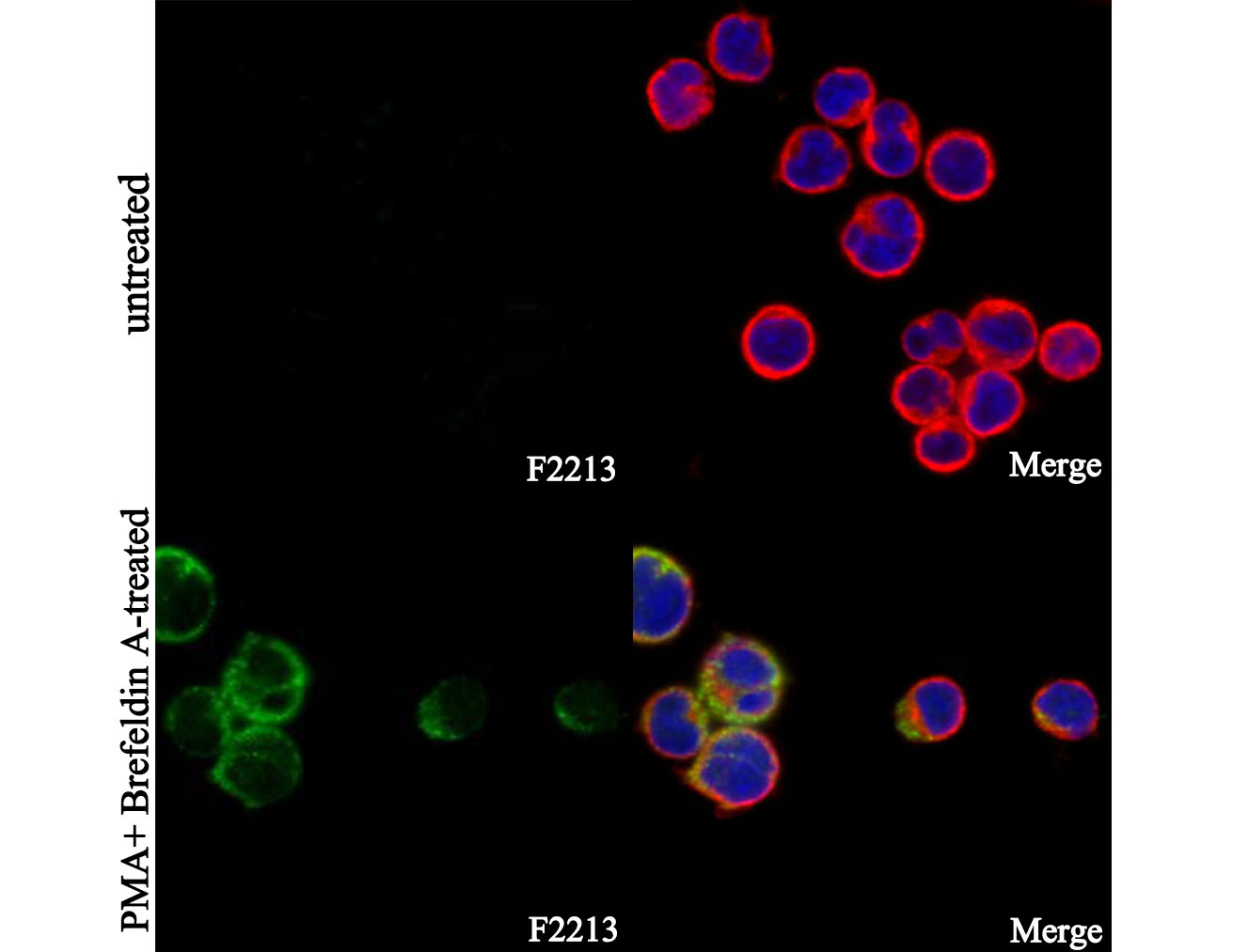 阳性对照 Jurkat cell (Phorbol-12-myristate-13-acetate, 40nM; A23187, 2 μM; Brefeldin A, 300 ng/ml)