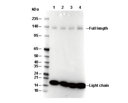 • Lane 1: Rat liver, Lane 2: MEF, Lane 3: C2C12, Lane 4: U937