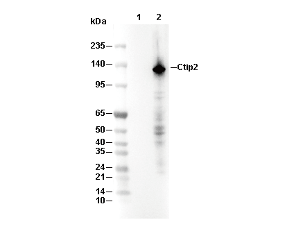 • Lane 1: HeLa, Lane 2: HeLa (transfected with human LATS2)