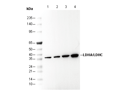 LDHA/LDHC Antibody [G7G8] 可检测内源性 LDHA/LDHC 总的蛋白水平。