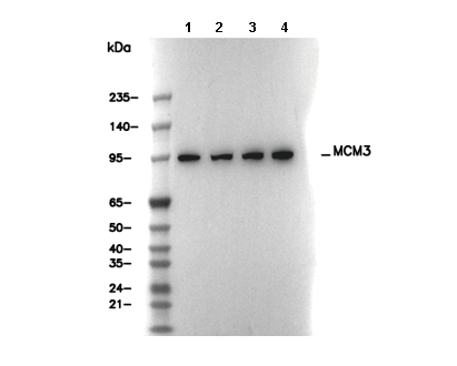 MCM3 Antibody [B16A9] 可检测内源性 MCM3 总蛋白水平。