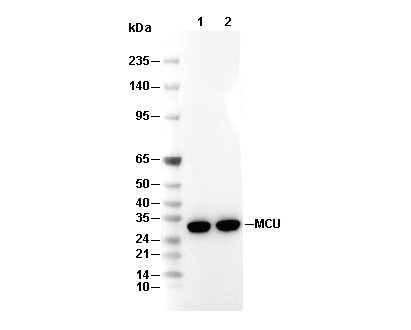 MCU Antibody [A6E7] 可检测内源性 MCU 总蛋白水平。