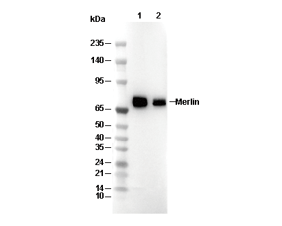 Merlin Antibody [D2J18] 可检测内源性 Merlin 总蛋白水平。