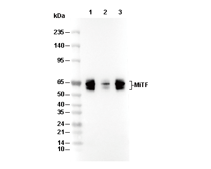 MiTF Antibody [B21F15] 可检测内源性 MiTF 总蛋白水平。