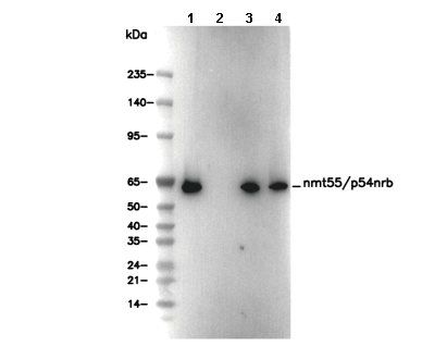 nmt55/p54nrb Antibody [C24P7] 可检测内源性 nmt55/p54nrb 总蛋白水平。