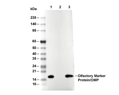 • Lane 1: Mouse olfactory bulb, Lane 2: Mouse brain, Lane 3: Rat olfactory bulb