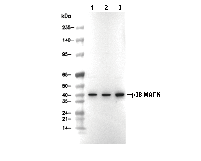 p38α MAPK Antibody [N19P8] 可检测内源性 p38α MAPK 总蛋白水平。