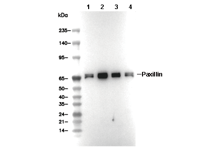 Paxillin Antibody [J24H4] 可检测内源性 Paxillin 总蛋白水平。