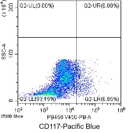 • Staining of bone marrow cells from C57BL/6 mice using PB Anti-CD117/c-Kit Antibody (Clone: 2B8) (Product No.: G4060). Analyzed data are derived from total live cells.